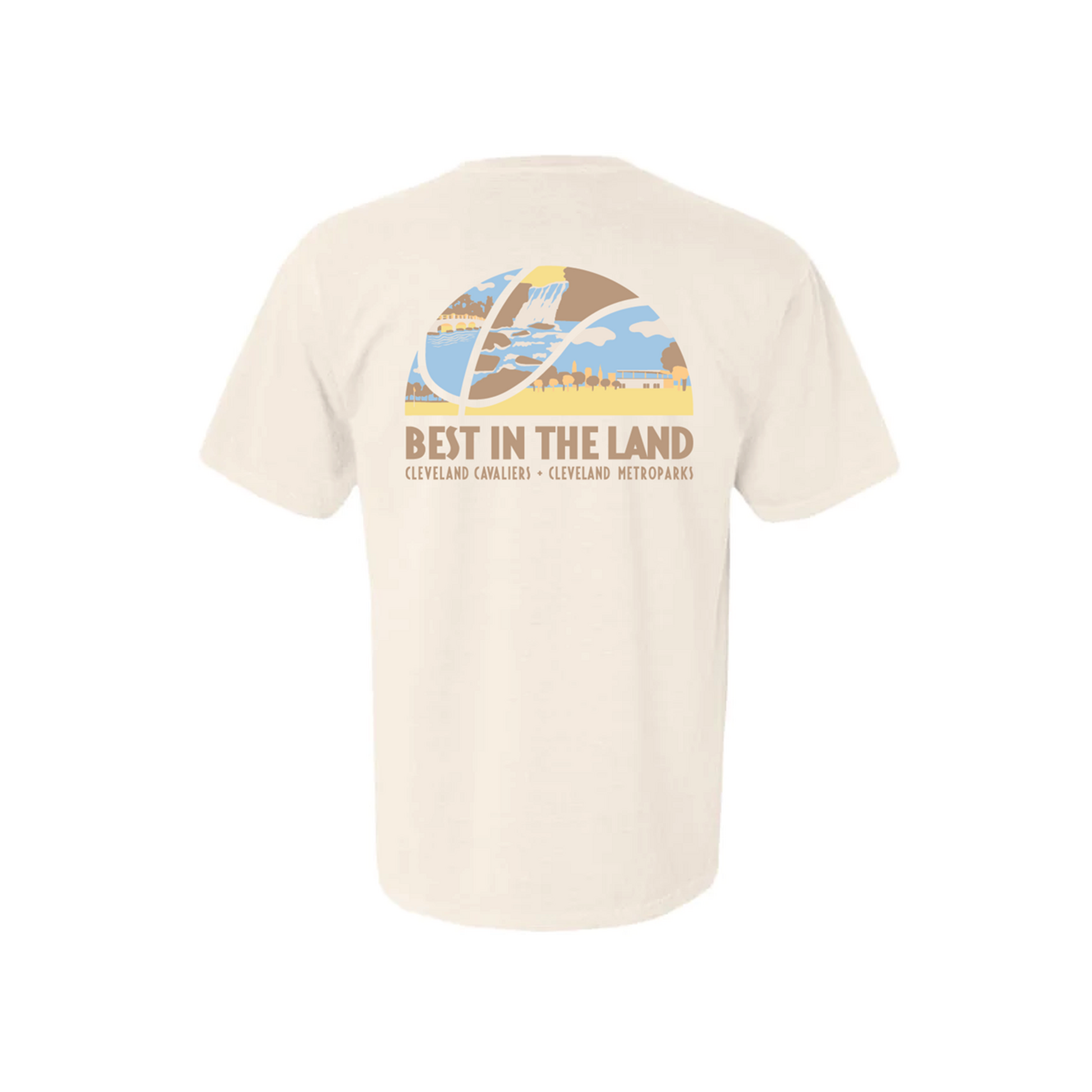 Shoot for style with this playful basketball tee celebrating Cleveland's hoops heritage. Featuring a landscape-inspired design that captures the spirit of the Cavaliers and the natural beauty of Cleveland Metroparks, this tee is perfect for fans who love their city and the game. Comfortable, casual, and ready to rep the land—because being the best in the land means looking good while you're at it.