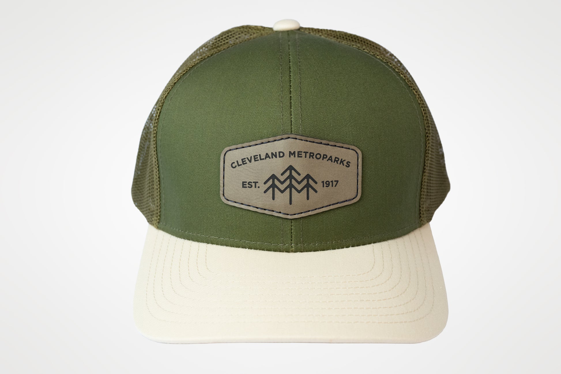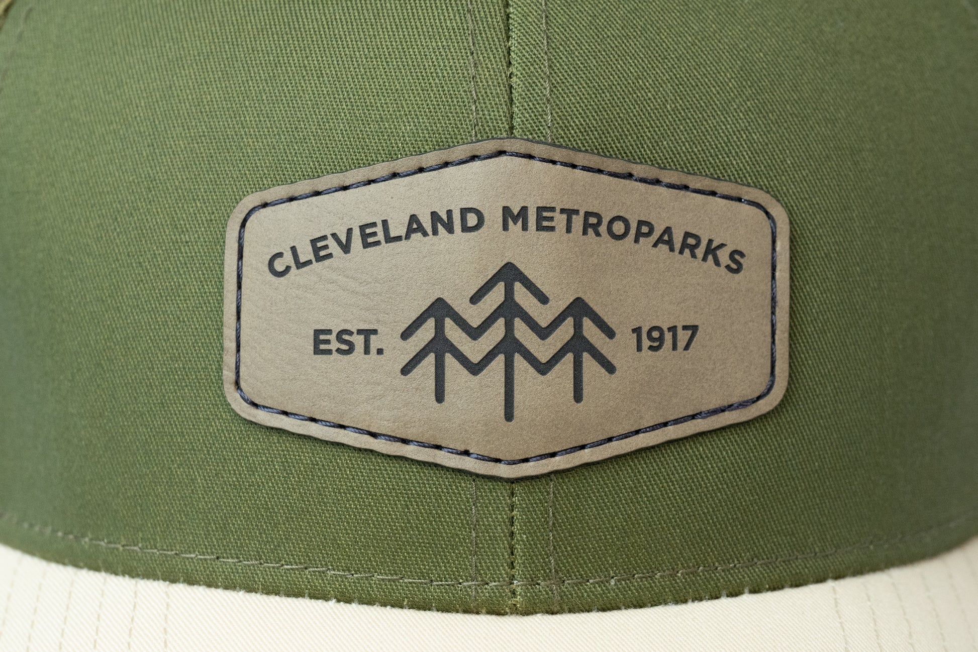 Simple and built to last, celebrate Cleveland Metroparks with this adjustable trucker hat which includes a faux leather patch.